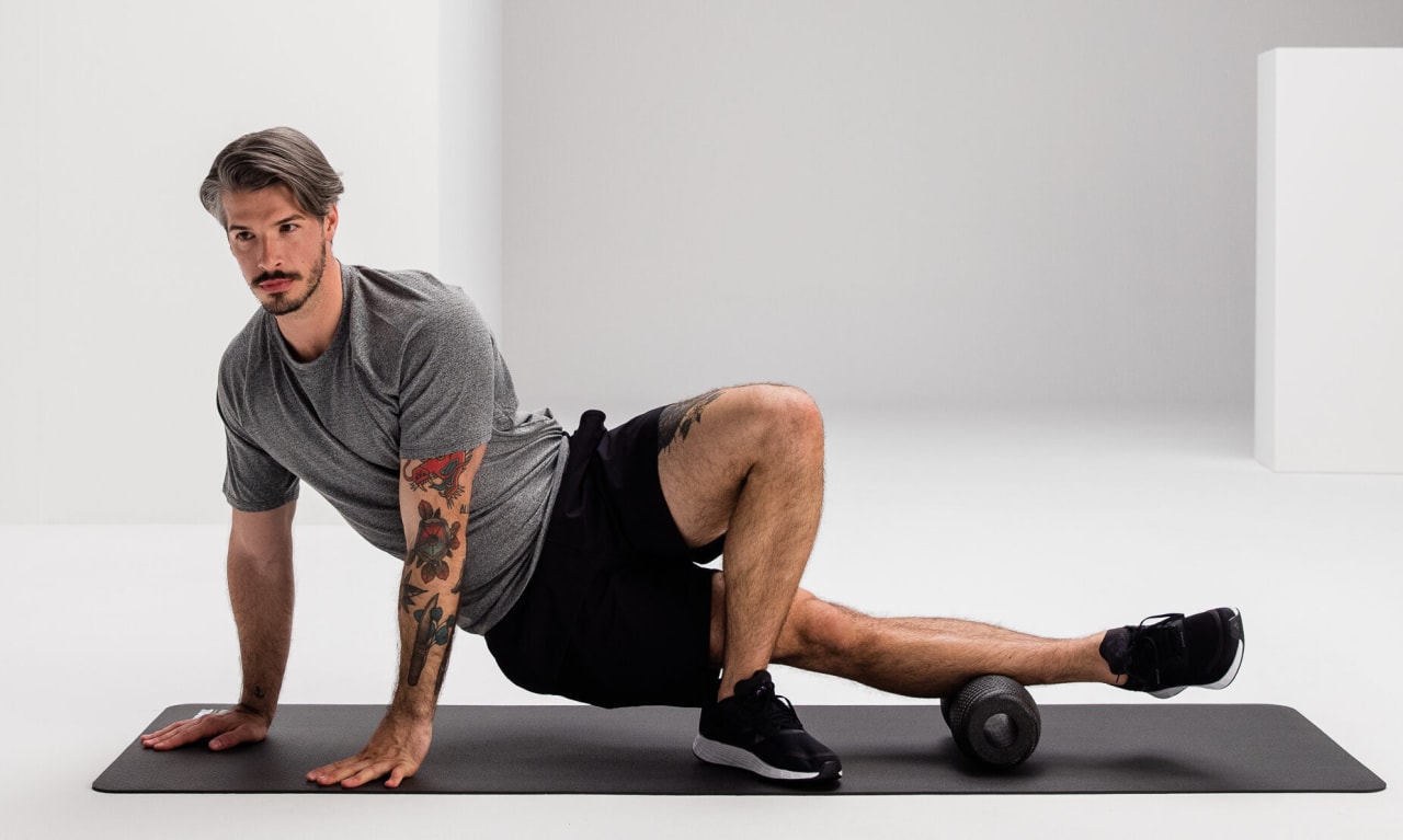 Bevor du mit deinem Dehnprogramm startest, solltest du dich aufwärmen, um die Muskeln auf die kommende Dehnung vorzubereiten, z.B. mithilfe von regenerierenden und aktivierenden Faszienrollenübungen für die Oberschenkel