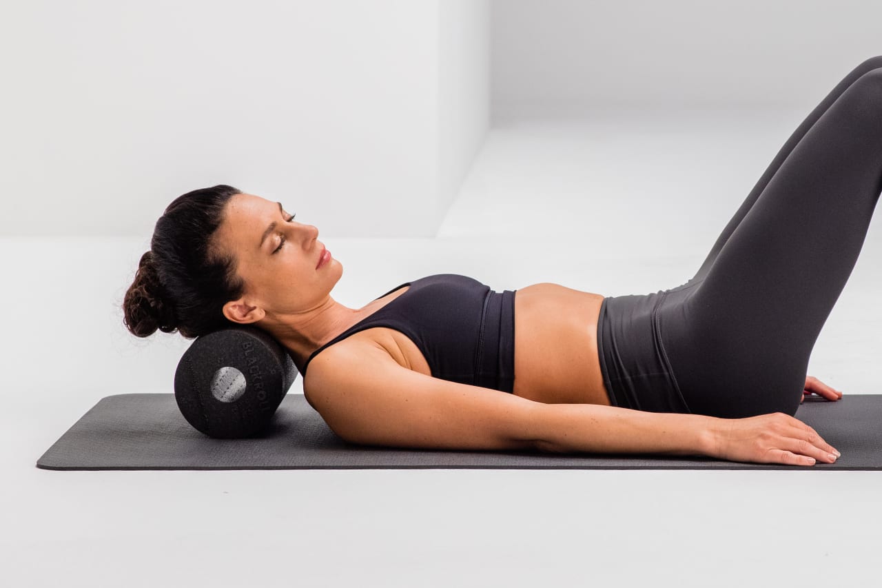 Wie wirkt’s: Die BLACKROLL® Selbstmassage lockert Verspannungen im Nackenbereich durch gezielten Druck auf die Faszien. Wichtig ist dabei, nicht nur den Nacken selbst zu bearbeiten, sondern auch die Brust- und vordere Halsmuskulatur einzubeziehen. Diese Technik verbessert die Durchblutung, löst Verklebungen im Gewebe und bereitet die Muskulatur optimal auf weitere Übungen vor.